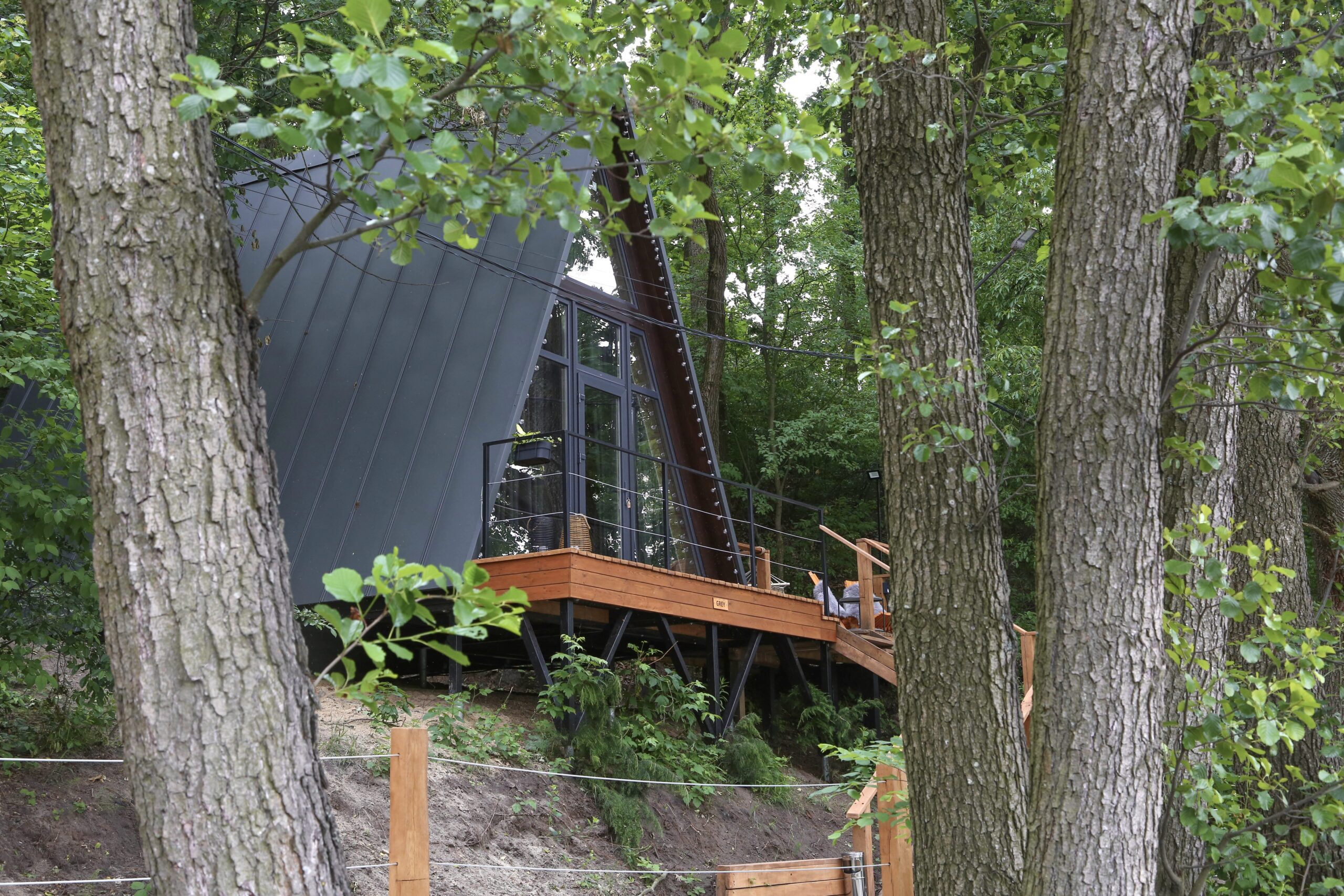 А-фрейм — це той самий будинок для відпочинку, який з’являється у мріях, коли хочеться втекти від міста, але без жодних компромісів у комфорті. Його легко впізнати за характерною трикутною формою, панорамними вікнами, інтер’єром з великою кількістю світла, повітря й натурального дерева. В такому котеджі почуваєшся ніби десь у скандинавському лісі чи в карпатській колибі, хоча насправді — це Character Park у Крюківщині під Києвом.