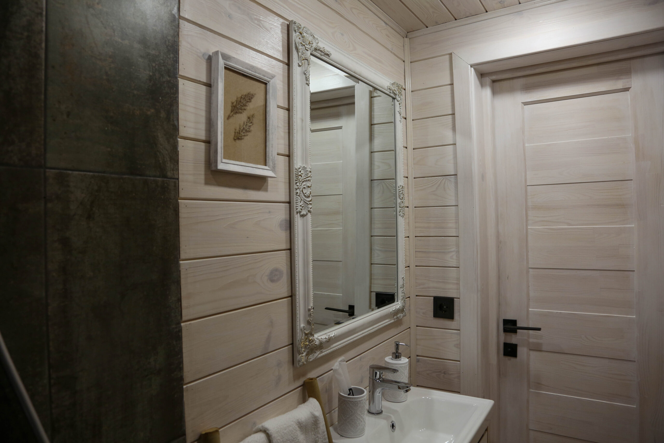 - панорамні вікна забезпечують м’яке природне освітлення, створюють ефект єднання з природою — можна насолоджуватися заходом сонця, зоряним небом, красою озера чи засніженим лісом, не виходячи з теплого котеджу;