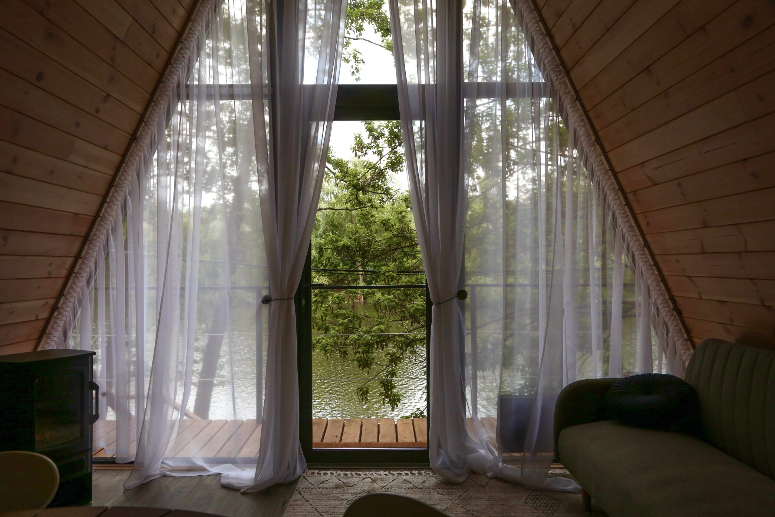 - Три затишні А-frame будиночки — White, Black та Grey — розташовані просто біля озера та ідеально підходять для відпочинку в тиші природи