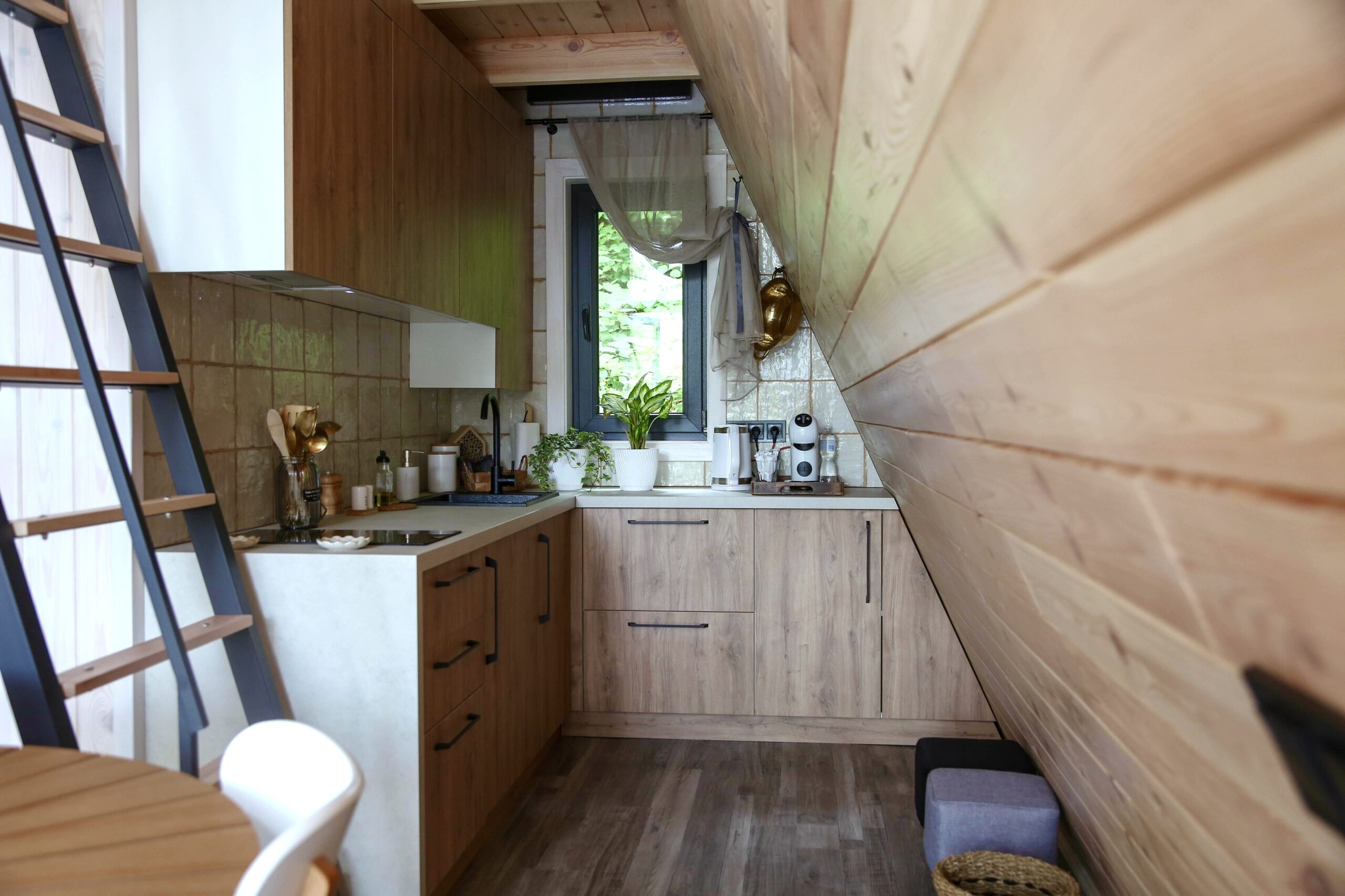 - дерев’яні елементи створюють теплий та затишний інтер’єр;